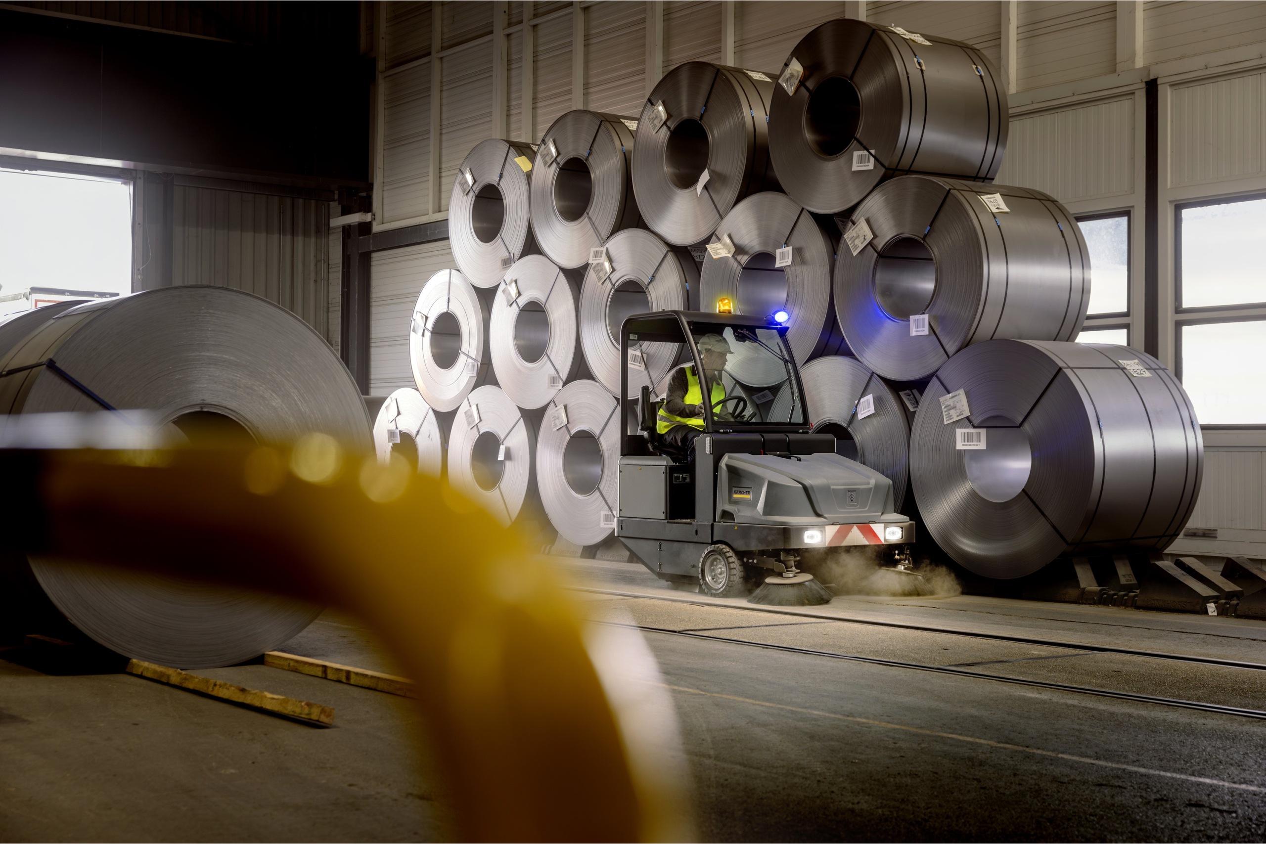 Robust, langlebig und ideal für Einsätze bei einem hohen Schmutz- und Staubaufkommen im Außen- und Innenbereich: die Kärcher Industriekehrmaschine KM 130/300 R I Bp. Ihr großer Kehrbehälter und der kräftige Motor ermöglichen Reinigungseinsätze bis zu 3,5 Stunden, während der stabile, schützende Metallrahmen sowie die einfache Bedienung über Hebel perfekt auf die harten Bedingungen im industriellen Umfeld zugeschnitten sind. Ist sie mit dem leistungsstarken serienmäßigen Taschenfiltersystem und der optionalen Seitenbesen-Drehzahlregulierung für eine optimale Kehrgutführung zur Kehrwalze mit minimaler Staubaufwirbelung ausgestattet, gewährleistet die KM 130/300 R I Bp nahezu staubfreies Kehren, selbst in sehr staubigen Umgebungen. Für eine hohe Anwenderfreundlichkeit verfügt das Gerät zudem über einen Komfortsitz, praktische Ablagefächer sowie LED-Kontrollleuchten für den Betriebsstatus. Pannensichere Vollgummiräder, LED-Frontlichter und eine Warnkennleuchte sorgen für Sicherheit im unmittelbaren Arbeitsumfeld. Weitere verfügbare Anbausätze erhöhen nochmals die Sicherheit und machen die Maschine zu einem Reinigungsspezialisten. Batterie und Ladegerät sind im Lieferumfang enthalten.