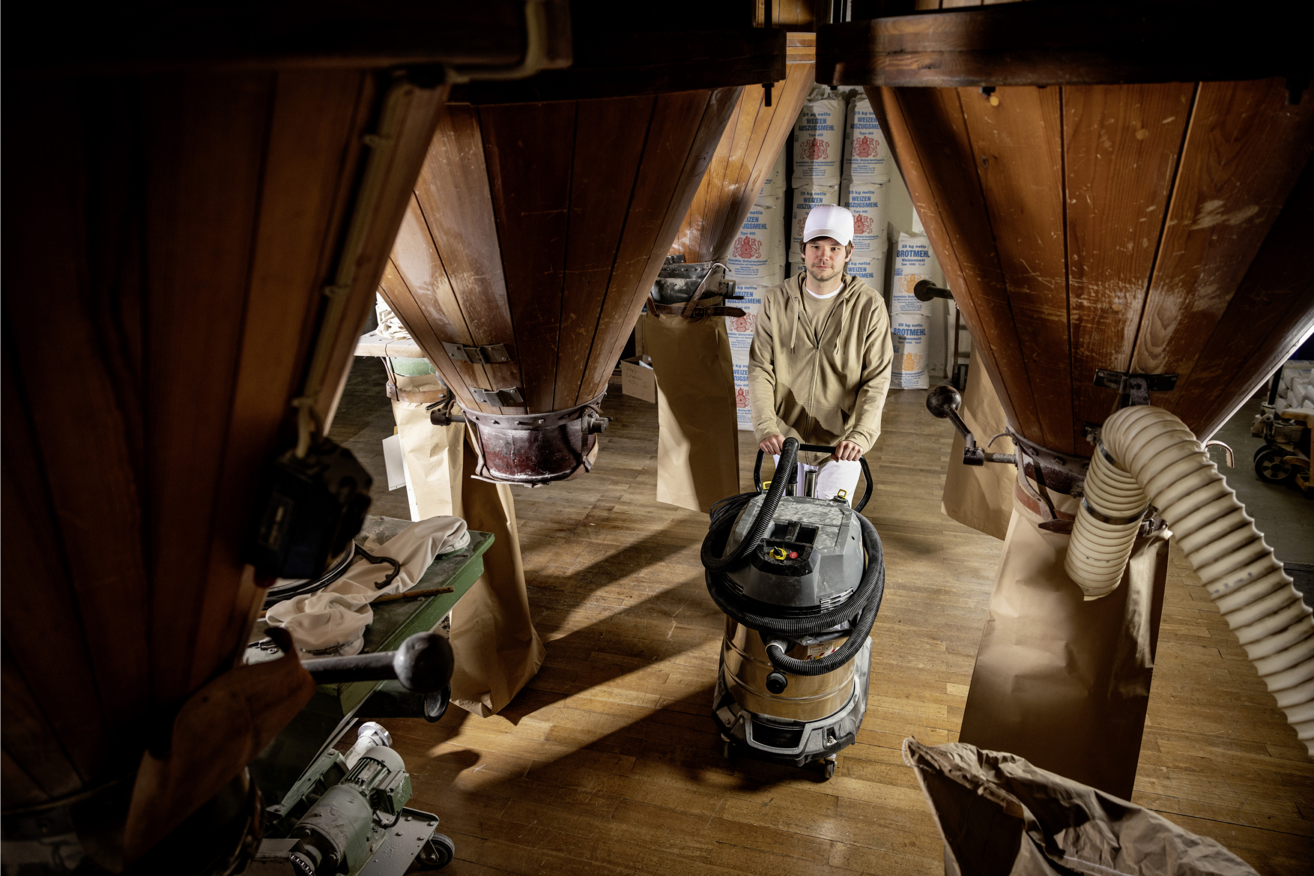 Der Sicherheitssauger NT 75/1 Me Ec H Z22 ist zertifiziert gemäß der EU-weit verbindlichen ATEX-Richtlinie 2014/34/EU durch das unabhängige und renommierte Prüfinstitut IBExU zur Beseitigung brennbarer und sonstiger Stäube der Staubklasse H in explosionsgefährdeten Bereichen der Zone 22. Der leistungsstarke, bürstenlose EC-Motor gewährleistet 5.000 Stunden Lebensdauer. Der explosionsgeschützte Nass-/Trockensauger verfügt über eine komplett durchgeerdete Bauweise, und das zugehörige, elektrisch leitende Zubehör verhindert elektrostatische Entladungen. Dank des 75-Liter-Behälters aus rostfreiem Edelstahl und des robusten Fahrwerks mit verstellbarem Schubbügel können große Mengen an Staub, Grobschmutz oder Flüssigkeiten komfortabel aus der Gefahrenzone beseitigt werden. Ein Sicherheitsfilterset sorgt für die sichere Entsorgung des Saugguts. Im Lieferumfang des NT 75/1 Me Ec H Z22 enthalten: Flachfaltenfilter Safety der Staubklasse H, der durch seine spezielle PTFE-Beschichtung besonders unempfindlich und langlebig ist und dazu einen Staubrückhaltegrad von 99,995 % garantiert.