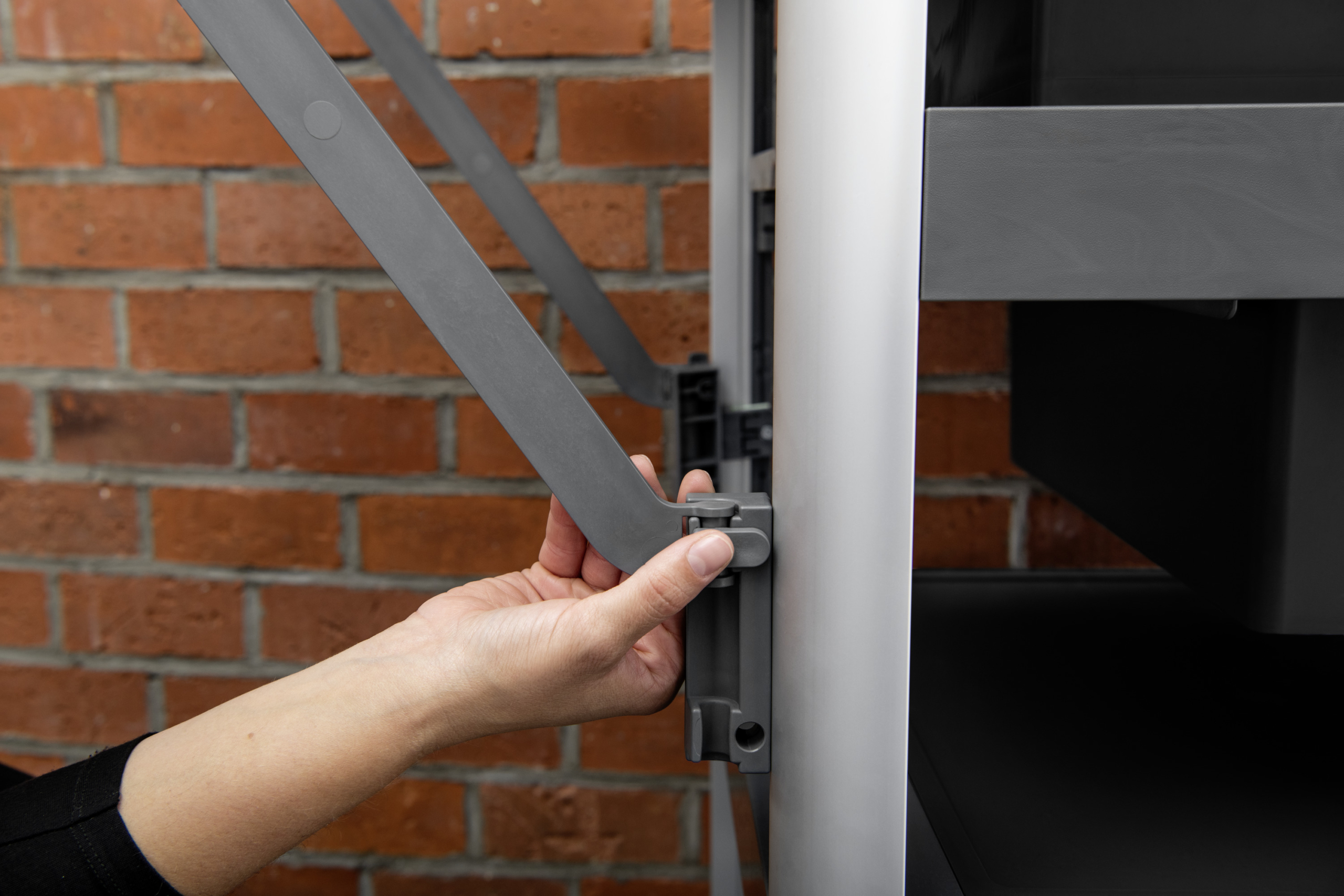 Als kompakter und offener Reinigungswagen eignet sich der FM Expert 50/ P besonders gut zur Anwendung der Vorkonditionierungsmethode. Das Entsorgungsmodul kann variabel in der Höhe verstellt werden und Müllbeutel in unterschiedlichen Größen aufnehmen. Reinigungsutensilien lassen sich in den 4 6-Liter-Eimern praktisch verstauen und nach Bereichen voneinander trennen. Weiteres Equipment findet Platz in einer individuell fixierbaren und herausziehbaren Schublade mit 16 Liter Fassungsvermögen. Dadurch werden zusätzliche Laufwege im Reinigungsprozess reduziert. Die mitgelieferten FlexoLink Anbindungen ermöglichen darüber hinaus die Mitnahme von Moppsystemen, Greifzangen und weiteren nützlichen Utensilien. FlexoLink XL eignet sich zur Befestigung eines Warnschilds oder des WVP 10 Adv. Sowohl die Toolflexanbindungen als auch der Haken lassen sich variabel an der Außenseite des FlexoMate anbringen. Für eine platzsparende Lagerung lassen sich Hängeeimer und Tabletts einfach abnehmen.