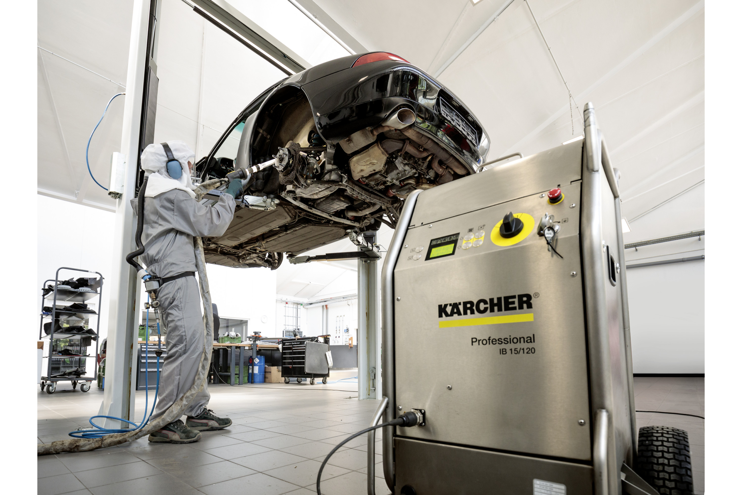 Das Trockeneisstrahlgerät IB 15/120 präsentiert sich leistungsstark, robust und überaus zuverlässig. Auch die cleveren Detaillösungen wie Kofferhalterung, Eisentleerung, Haltebügel und Ablagefächer tragen zum positiven Gesamteindruck bei, erhöhen den Bedienkomfort und steigern zudem den Spaß bei der Trockeneisreinigung. Und auch in technischer Hinsicht steckt die Lösung im Detail. So haben wir die Luftströmung in Gerät, Schlauch, Pistole und Düse entscheidend optimiert. Das Ergebnis: eine außerordentliche Reinigungsleistung. Trotz seiner Größe ist der IB 15/120 sehr mobil und kann von nur einer Person problemlos zum Beispiel über Stufen bewegt werden. Kurzum: Trockeneisstrahlen in Bestform!